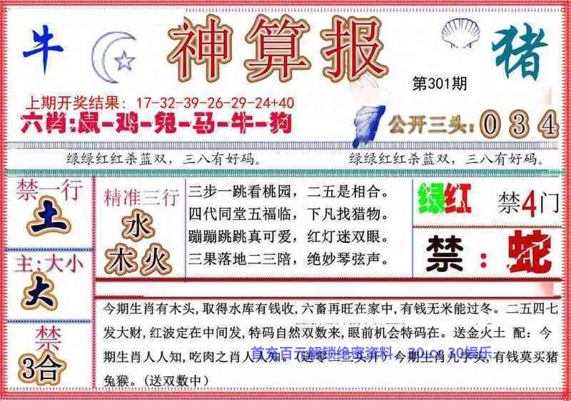 301期:七肖【龙狗猪兔鸡虎】开:牛05准