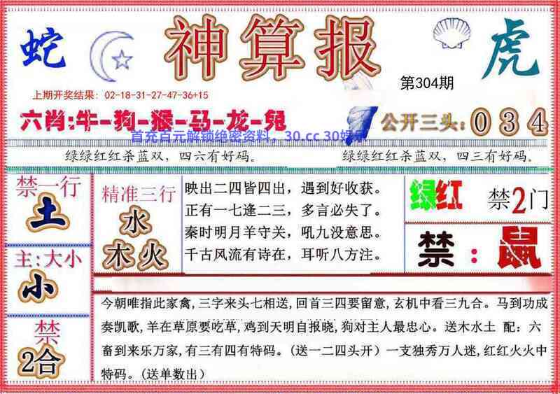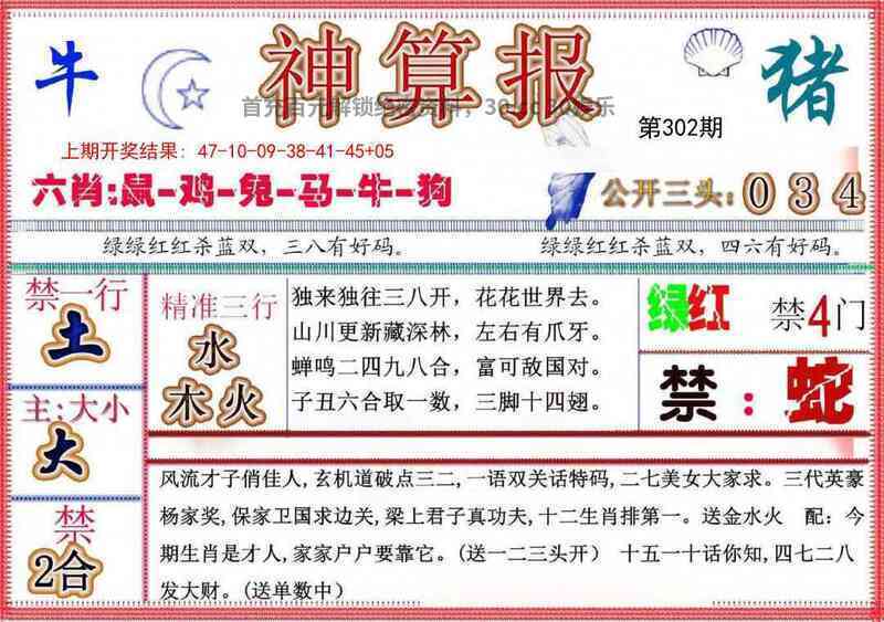 302期:七肖【龙鼠狗兔鸡虎牛】开:猴22错